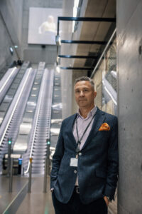 Toimitusjohtaja Janne Salonen nojaa Helsinki-Vantaan asemalla seinään, jonka takana on jo ”tilavaraus” alkavalle raiteelle. – Kuva: Petri Koivisto